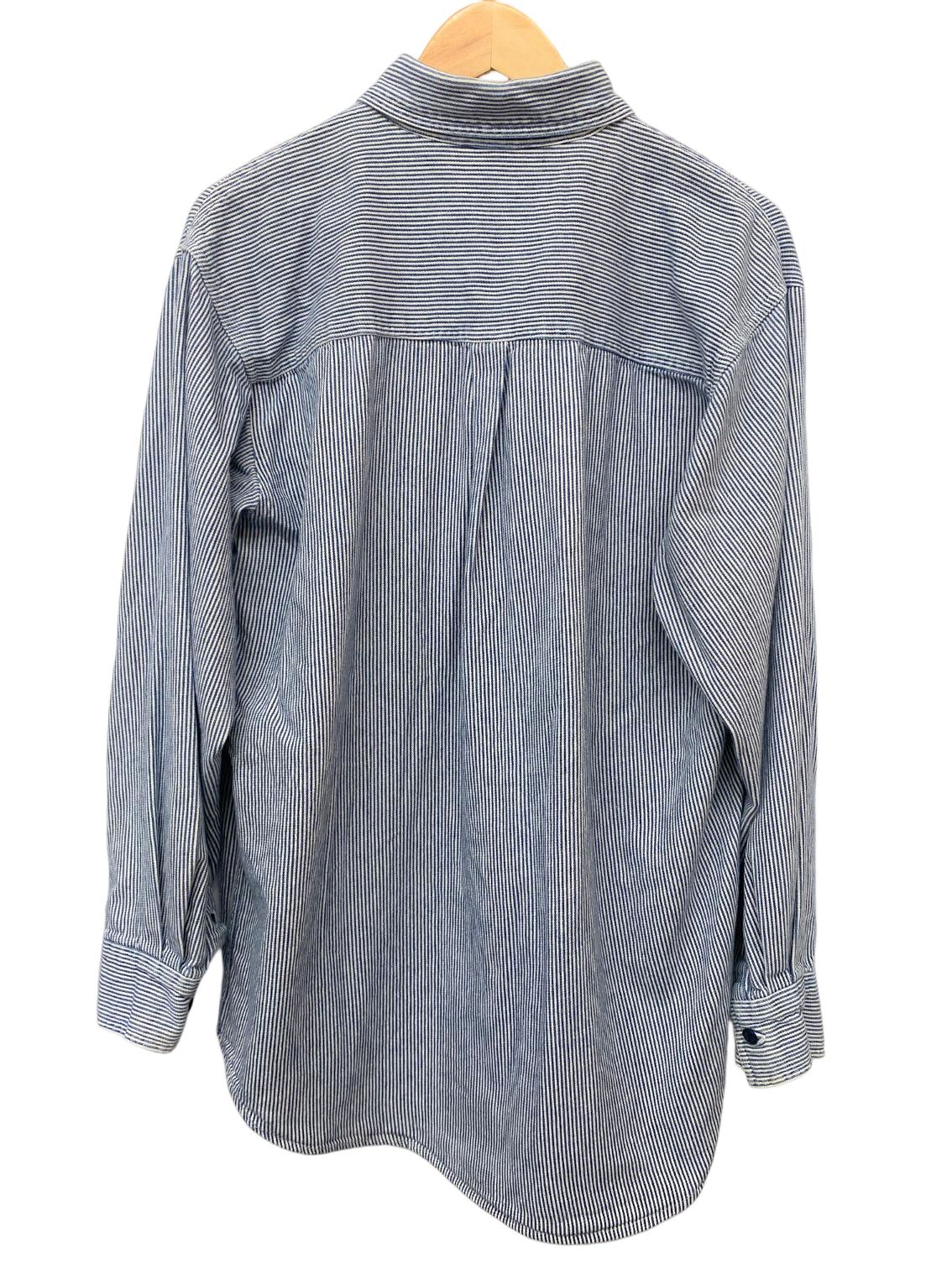 中肉コットンのホワイト✕ブルーのヒッコリー地に