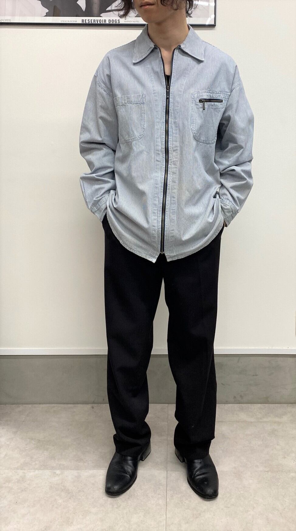 USワークウェアの代表生地”ヒッコリー”地のジップシャツ。