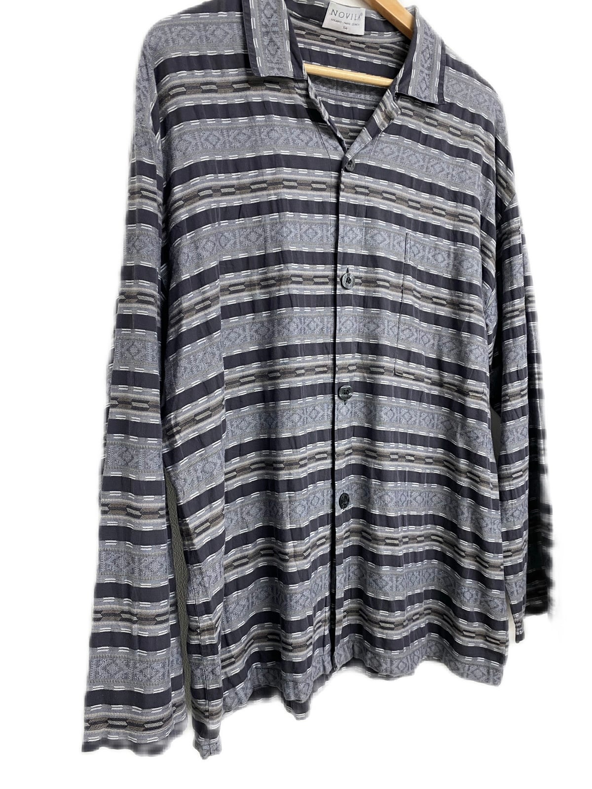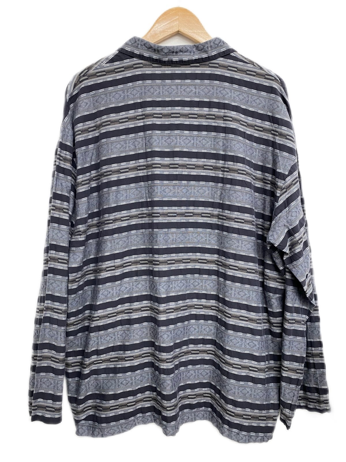 ネイティブボーダー柄の開襟シャツ。